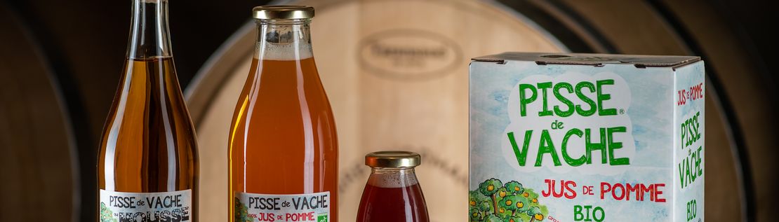 Existe aussi jus Pomme-framboise. Bouteilles de 25cl ou 1 litre