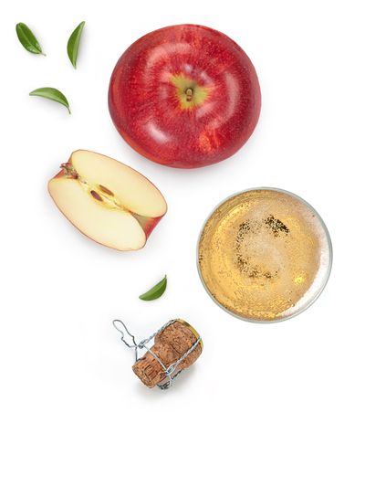 Le jus de pomme bio pétillant en bouteilles de 75 cl.